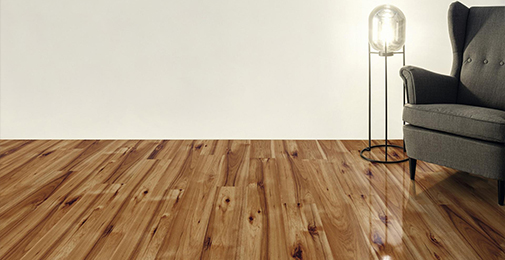 Nature meets high-gloss: the 1-strip Hickory Buntingford decor is characterised by a vibrant play of colour. The surface has a high-gloss look that makes the flooring ideal for modern interior designs.
