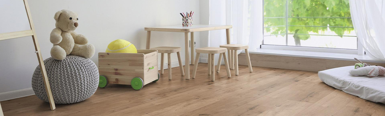 Bekker laminate wood floors has small variations from plank to plank that creates a likeliness to natural wood grain.