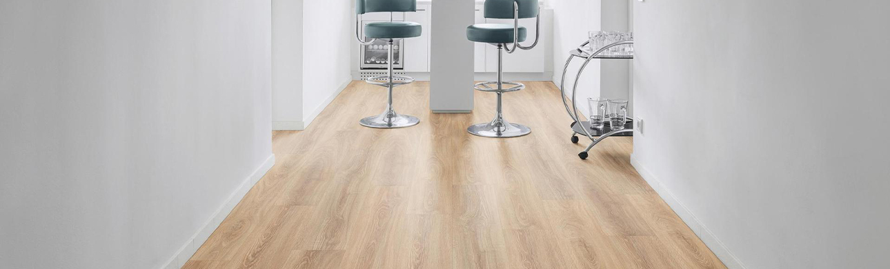 Bekker laminate wood floors has small variations from plank to plank that creates a likeliness to natural wood grain.